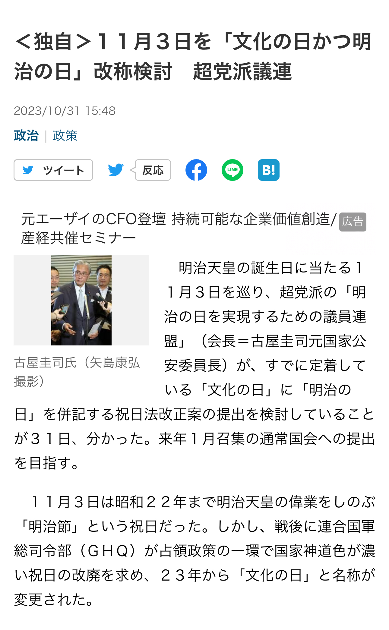 明治の日を併記しようという法案提出が