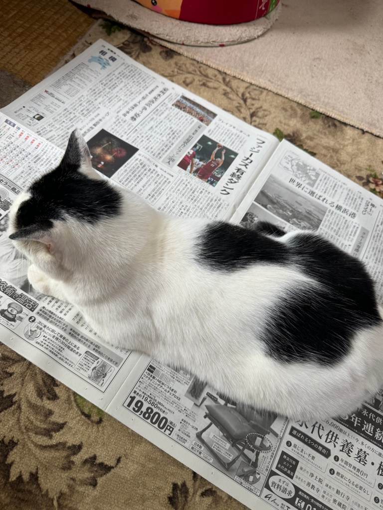 猫はなぜ新聞を広げると邪魔をするのでしょうね😅
